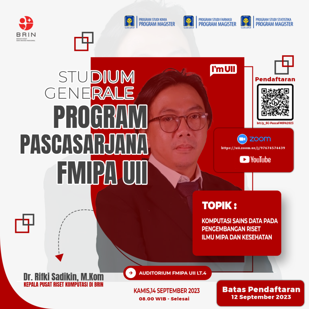 Ada info nih buat kalian,, kalau program pasca sarjana FMIPA UII mengadakan Studiumgenerale pada tanggal 14 september 2023